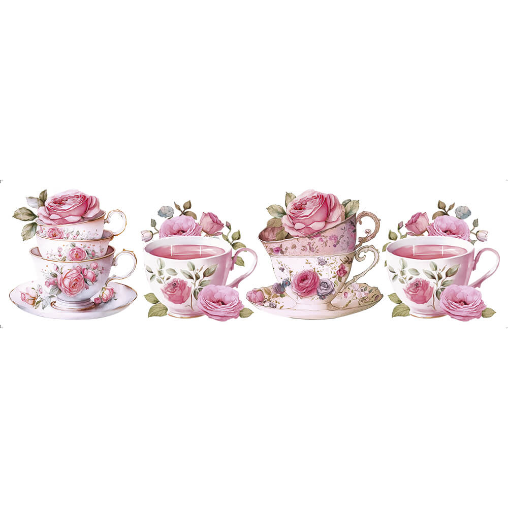 Transfer Têxtil Litoarte 24x7 TTB4-019 Chá e Xicaras Empilhadas