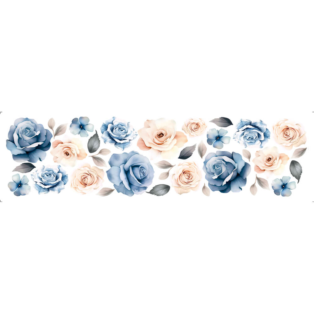 Transfer Têxtil Litoarte 24x7 TTB4L-014 Lili Negrão Rosas Azul e Bege