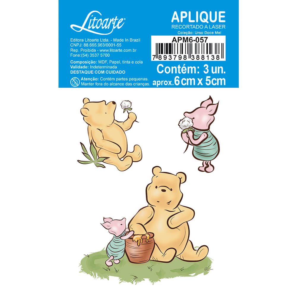 Modelo: Aplique Litoarte APM6-057 6cm Urso Doce Mel