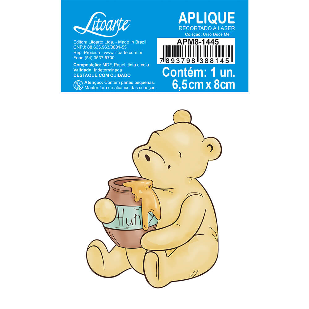 Modelo: Aplique Litoarte APM8-1445 8cm Urso Doce Mel