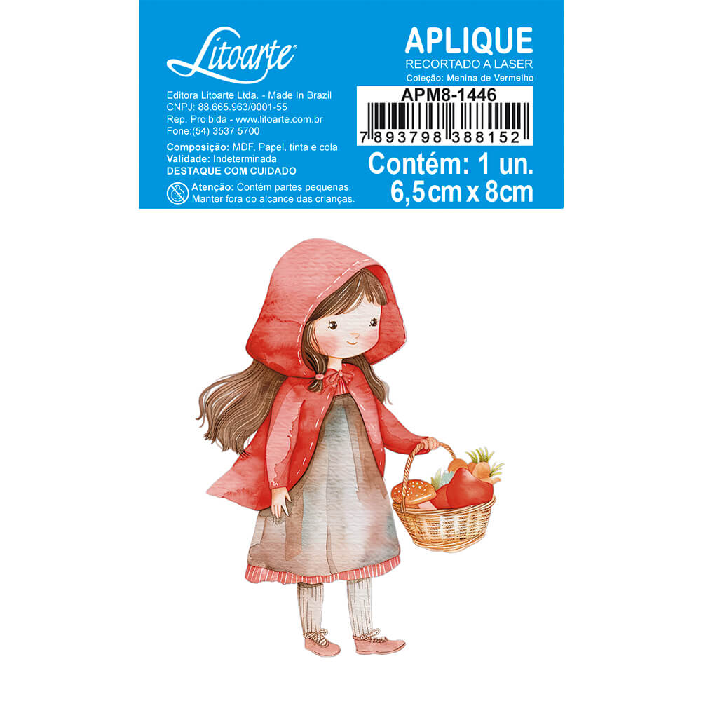 Modelo: Aplique Litoarte APM8-1446 8cm Menina de Vermelho