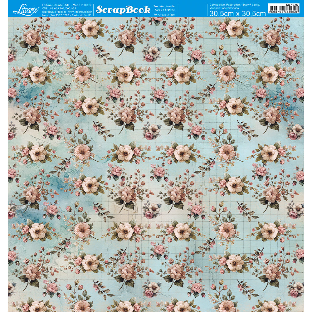 Papel Scrapbook Litoarte SD-1376 Conjunto Aconchego 30,5x30,5cm