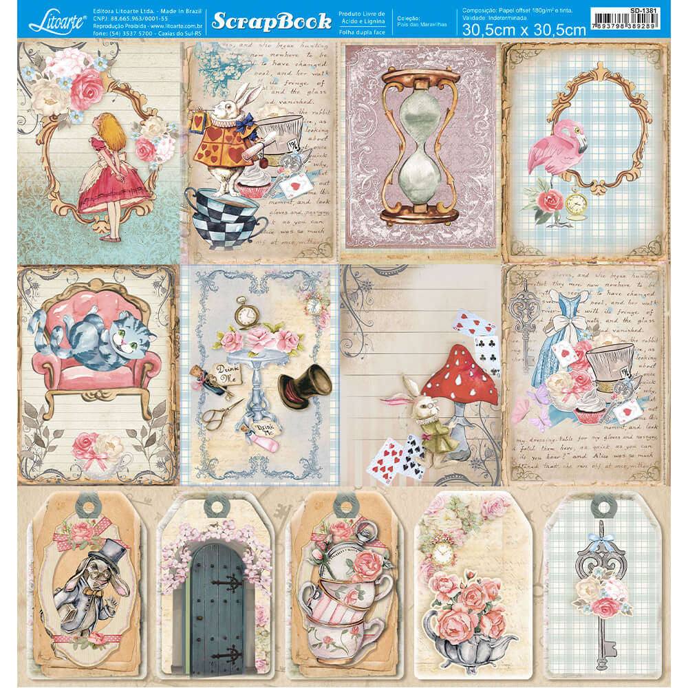 Modelo: Papel Scrapbook Litoarte SD-1381 Alice País das Maravilhas 30,5x30,5cm