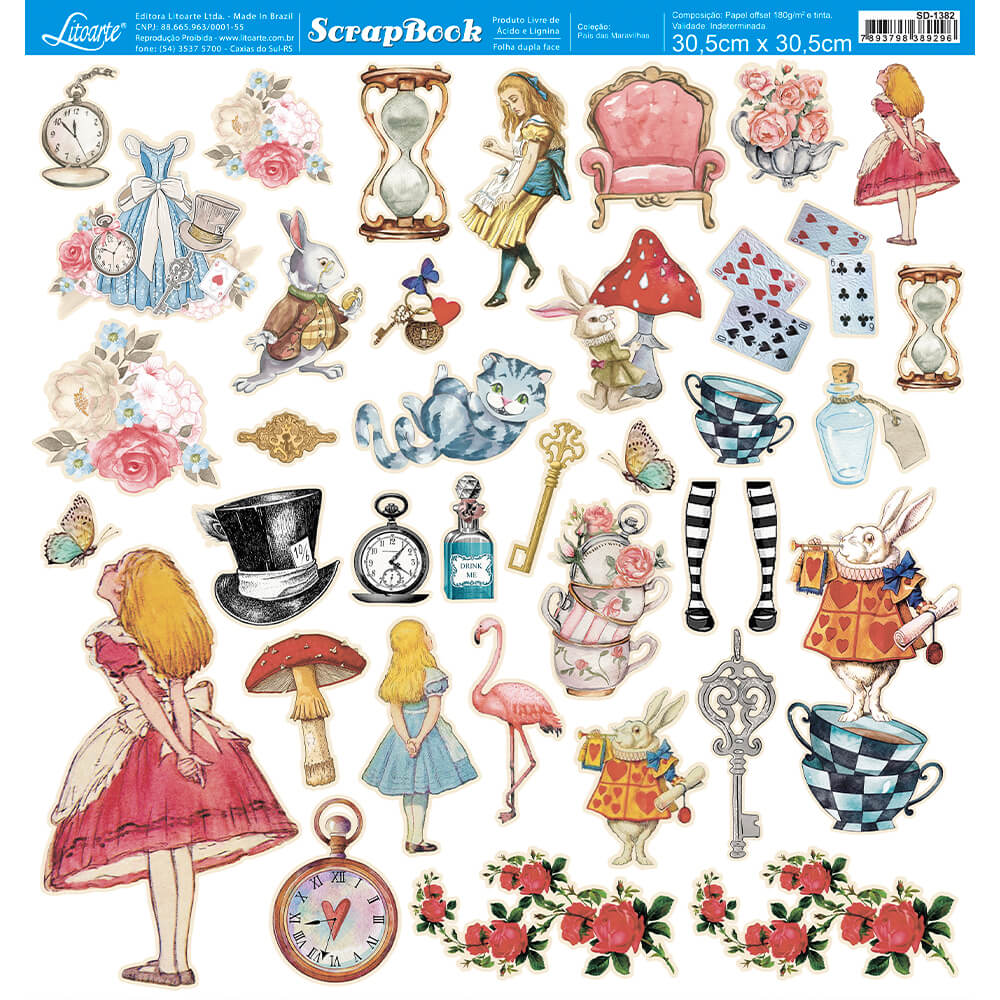 Modelo: Papel Scrapbook Litoarte SD-1382 Alice País das Maravilhas 30,5x30,5cm