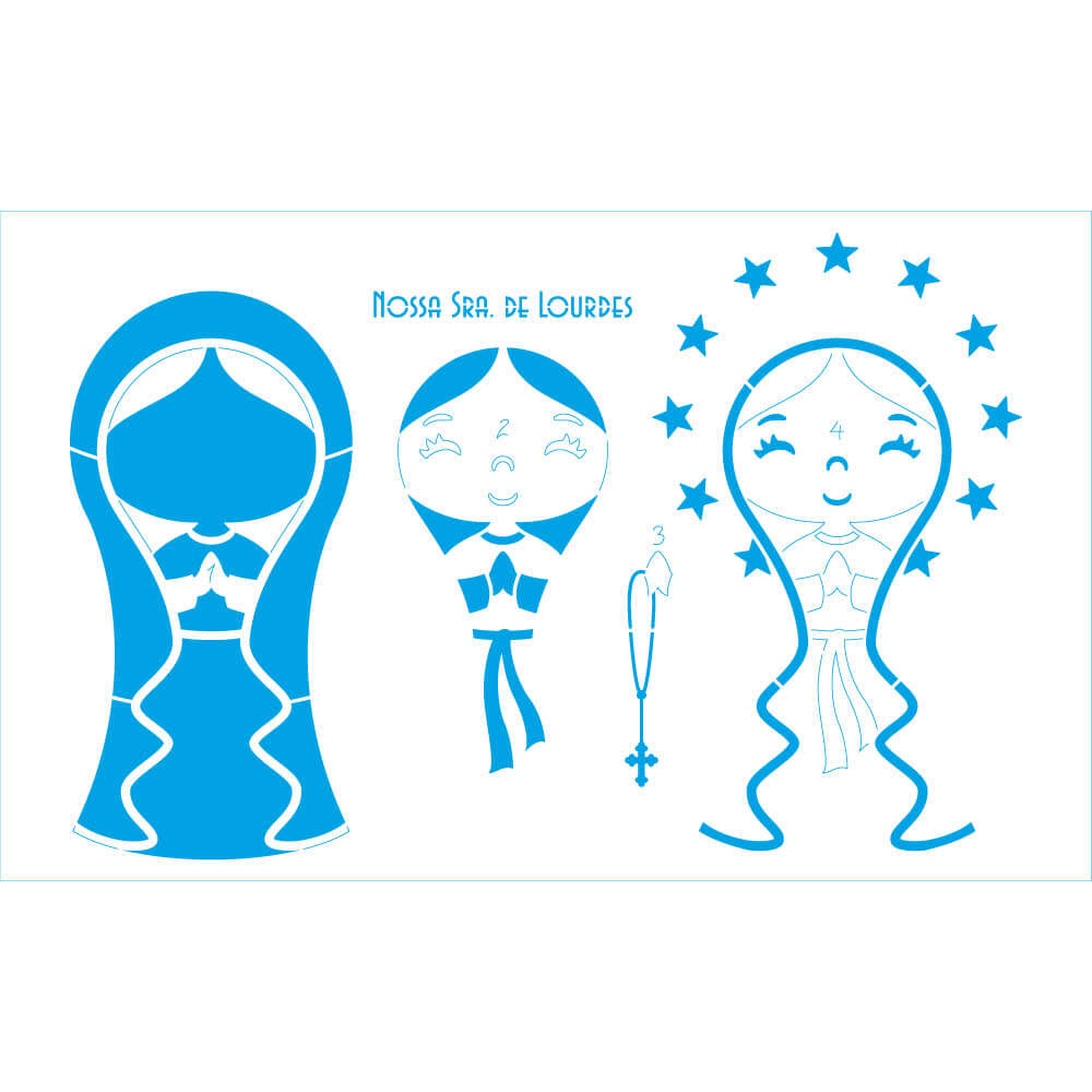 Tags: Stencil religioso, Nossa Senhora de Lourdes, pintura decorativa religiosa, artesanato sacro, moldes para artesanato, stencil para tecido, stencil transparente, Stencil Litoarte, pintura com stencil, decoração sacra, DIY religioso, stencil reutilizável, artesanato em MDF, material para artesanato, decoração religiosa, arte espiritual