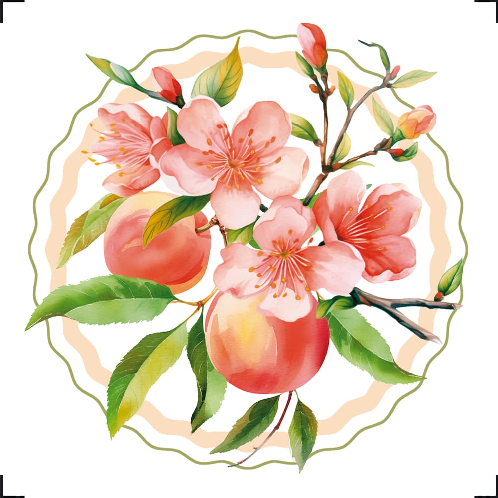 Tema Decorativo: O estilo "Pêssegos" é delicado e versátil, ideal para decorações em estilo cottagecore, vintage, ou para a cozinha.