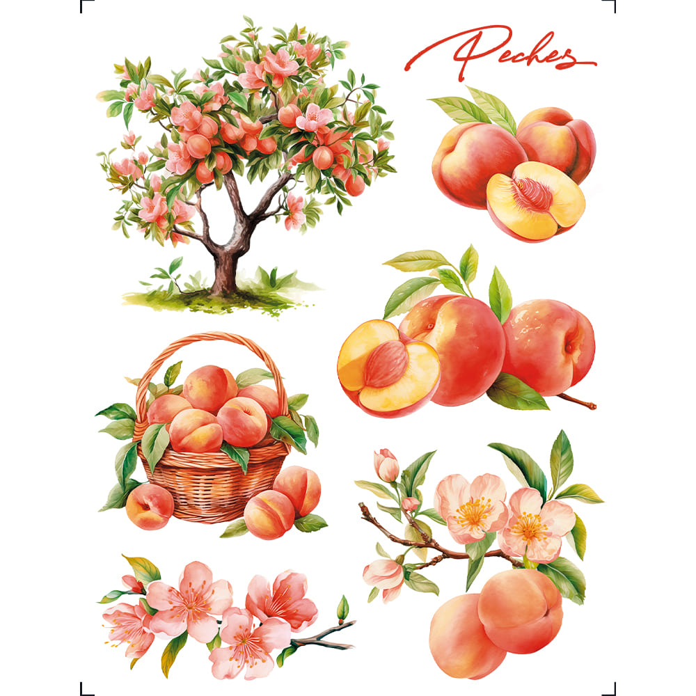 Tema Decorativo: O estilo "Pêssegos" é delicado e versátil, ideal para decorações em estilo cottagecore, vintage, ou para a cozinha.