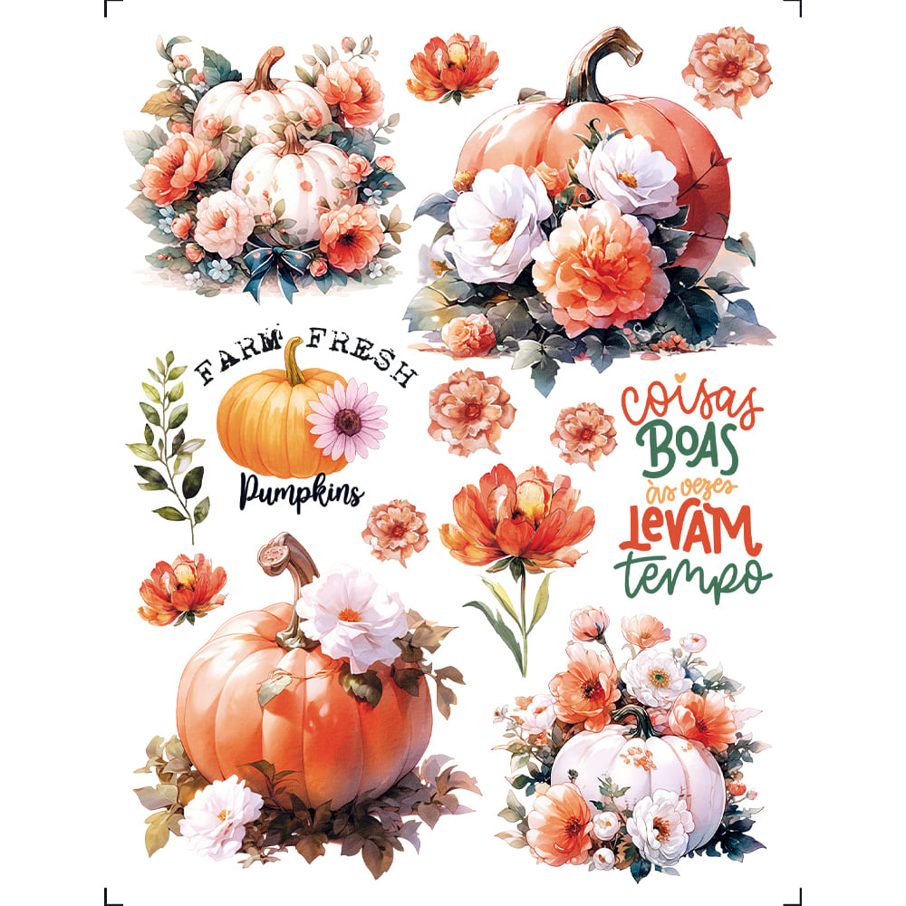 Crie projetos com o clima acolhedor do outono e a magia do Halloween usando o Transfer de Imagem Litoarte TIM-008. Com a estampa exclusiva da Coleção Abóboras, este transfer é a escolha ideal para dar um toque rústico e temático a peças menores de artesanato e decoração.