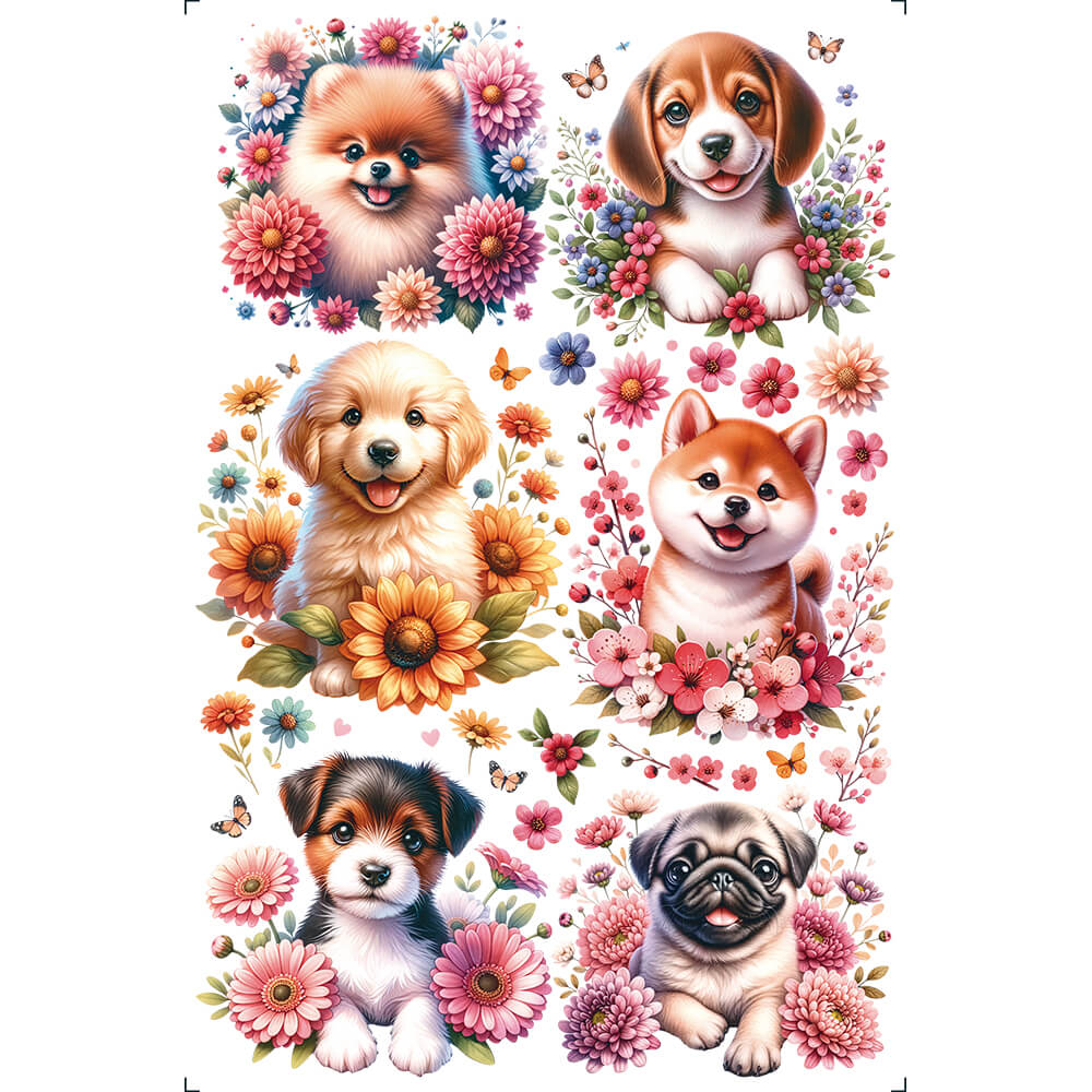 Modelo: Transfer Litoarte 19,5x29,5 TIB-042 Cachorrinhos e Flores