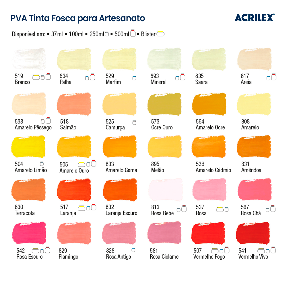 A Tinta PVA Fosca para Artesanato Acrilex é a queridinha dos artesãos e apaixonados por DIY. Com acabamento fosco aveludado, secagem rápida e altíssima cobertura, ela é perfeita para pintar superfícies porosas como madeira, MDF, cerâmica, gesso, papel e isopor.