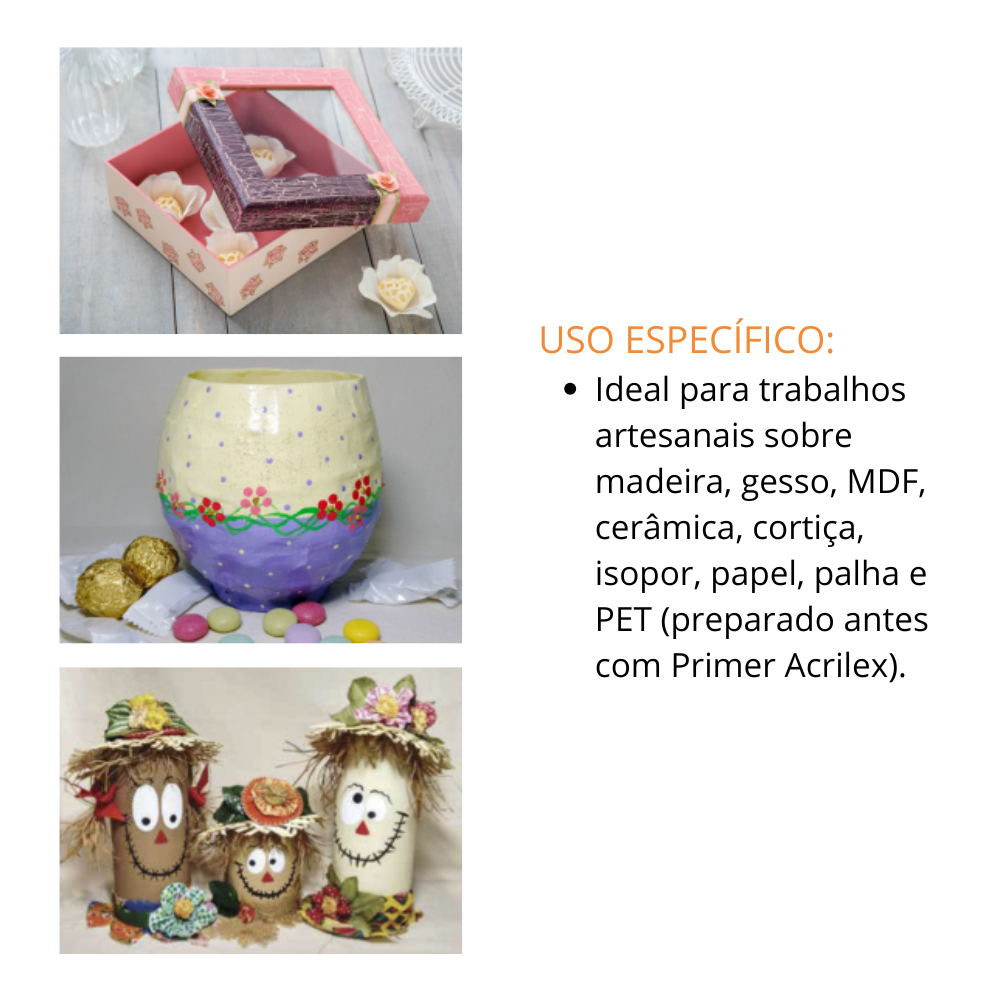 - Tinta super versátil para personalizar objetos, lembrancinhas, quadros, caixas e muito mais.