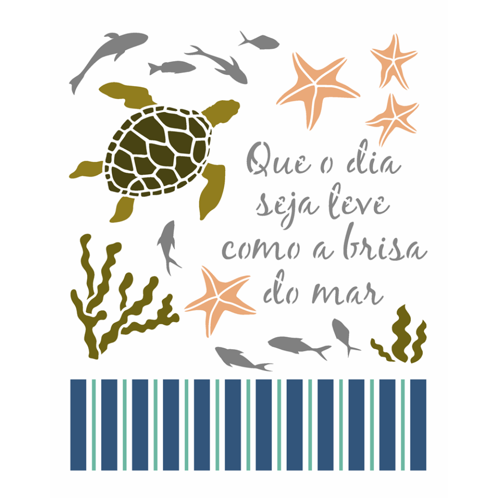 Tags: stencil OPA, fundo do mar, stencil náutico, conchas, âncora, stencil praia, scrap decor, decoração infantil, stencil 20x25, artesanato marítimo, OPA Criando Arte