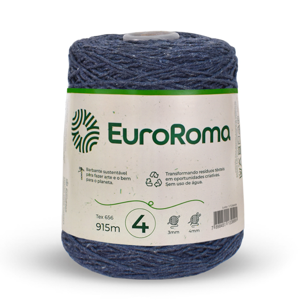 O Fio para Crochê Colorido da marca EuroRoma é o produto perfeito para quem busca qualidade em seus artesanatos. Embalagem composta por 600g (915m), titulagem 4/4 (4 fios de espessura 4), composto por 85% algodão reciclado e 15% de outras fibras. Têm como característica a sustentabilidade, qualidade, beleza e versatilidade, um produto que oferece exclusividade a todo tipo de peça. Cartela de cores variadas que atende a todo tipo de trabalho.