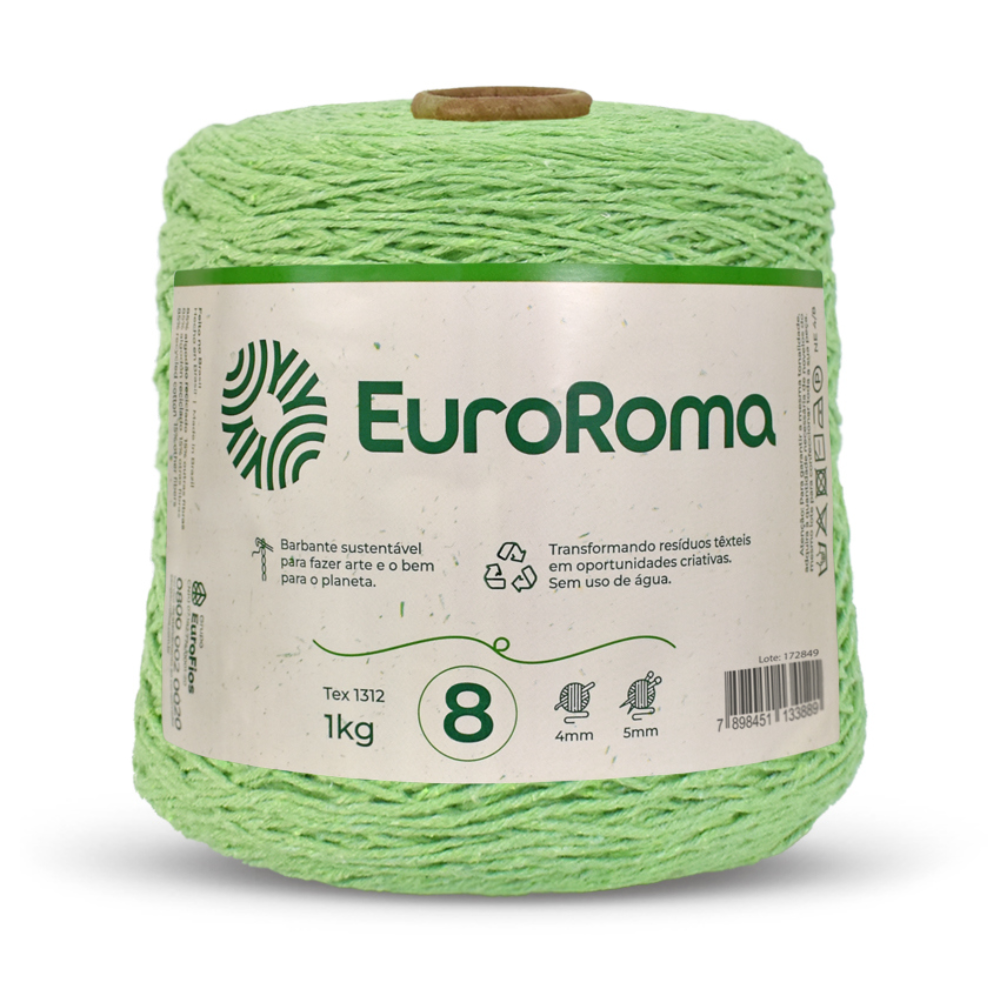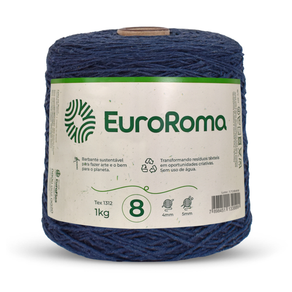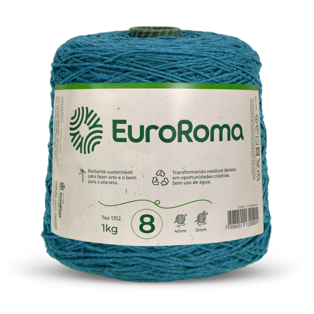 O Fio para Crochê Colorido da marca EuroRoma é o produto perfeito para quem busca qualidade em seus artesanatos. Embalagem composta por 1Kg (762m), titulagem 4/8 (8 fios de espessura 4), composto por 85% algodão reciclado e 15% de outras fibras. Têm como característica a sustentabilidade, qualidade, beleza e versatilidade, um produto que oferece exclusividade a todo tipo de peça. Cartela de cores variadas que atende a todo tipo de trabalho.