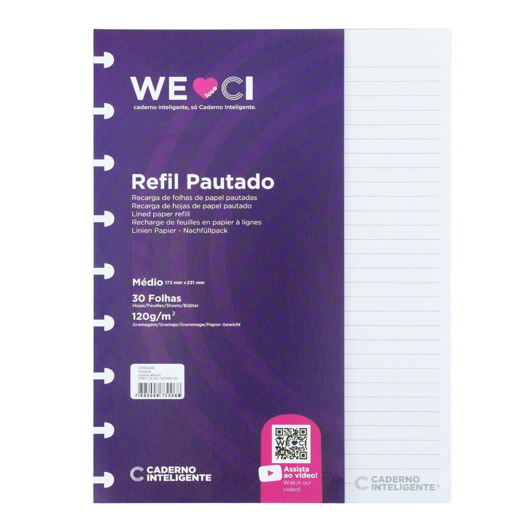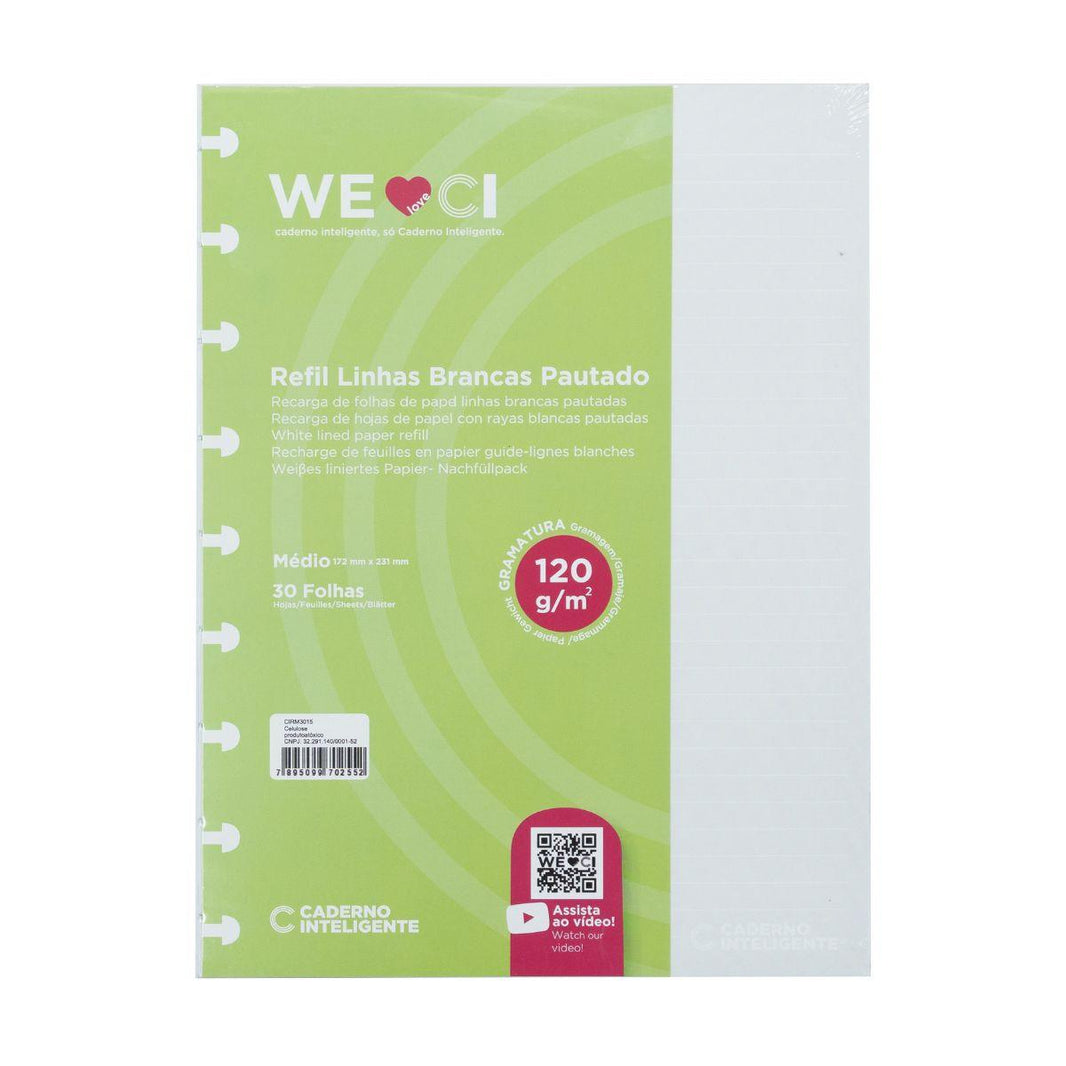 Refil Pautado Caderno Inteligente Médio Linhas Brancas 30 Folhas 120g