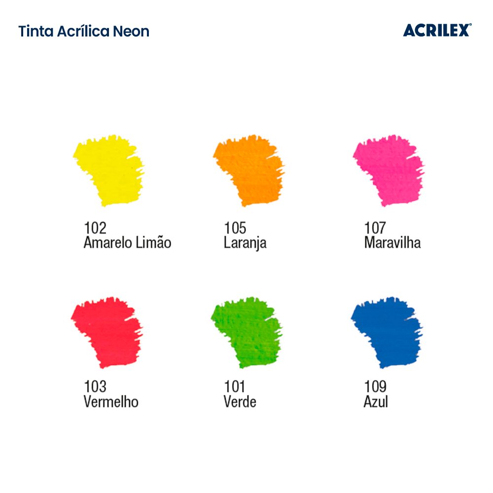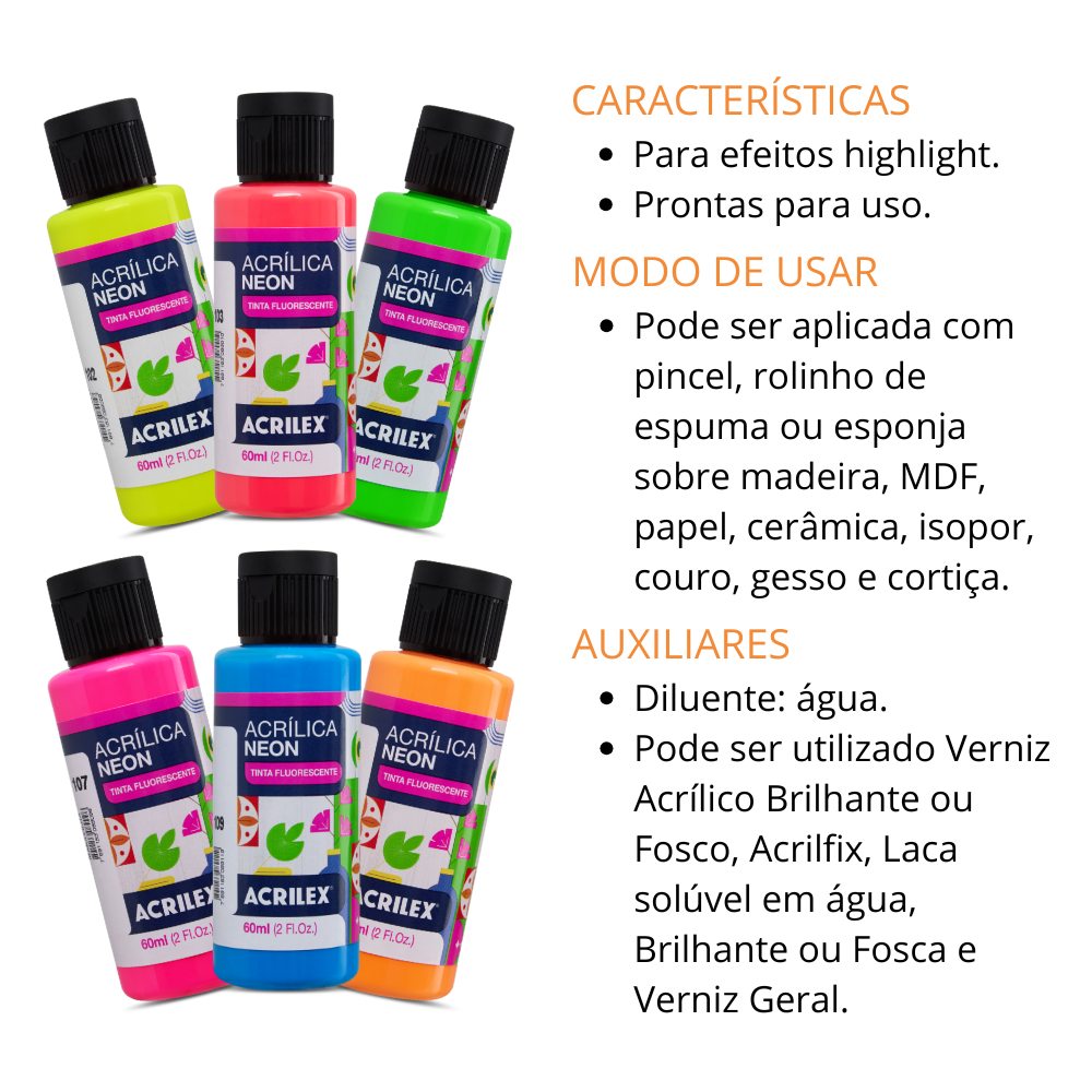 - Cores variadas da linha Neon Acrilex (conforme disponibilidade);