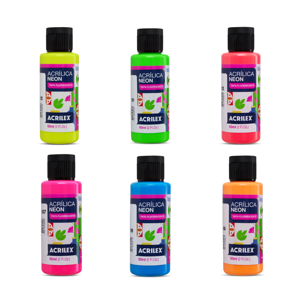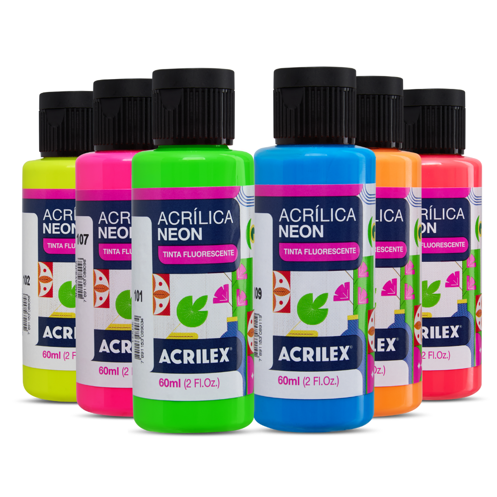 Kit 6 Tintas Acrílica Neon Fluorescente Acrilex 60ml – Linha Nature Colors