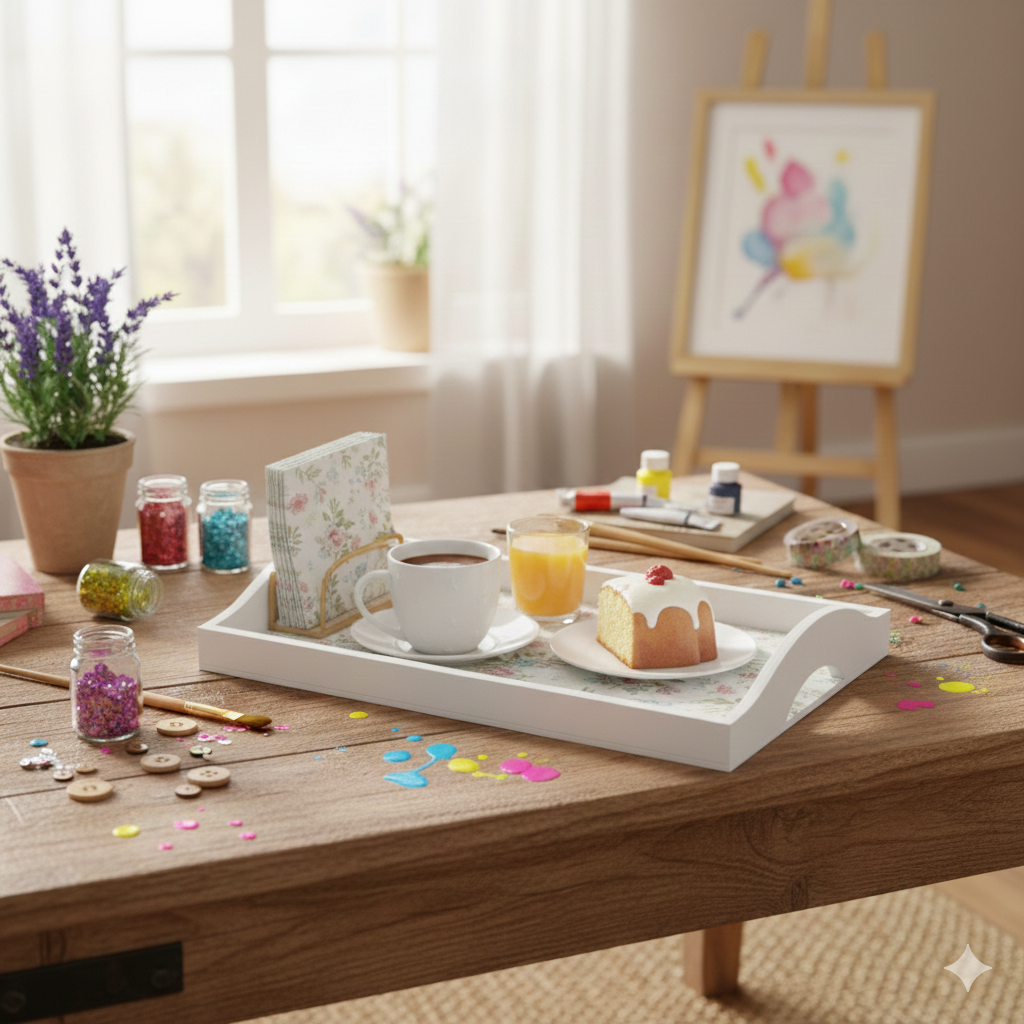 Ideal para decoração, organização e personalização artesanal, essa bandeja pode ser utilizada em diversos ambientes, como cozinha, sala, quarto, banheiro ou área gourmet. É perfeita para aplicação de técnicas como pintura, decoupage, stencil, pátina, scrapdecor, transfer e aplicação de tecidos, sendo uma excelente opção para uso pessoal ou produção de peças para venda.