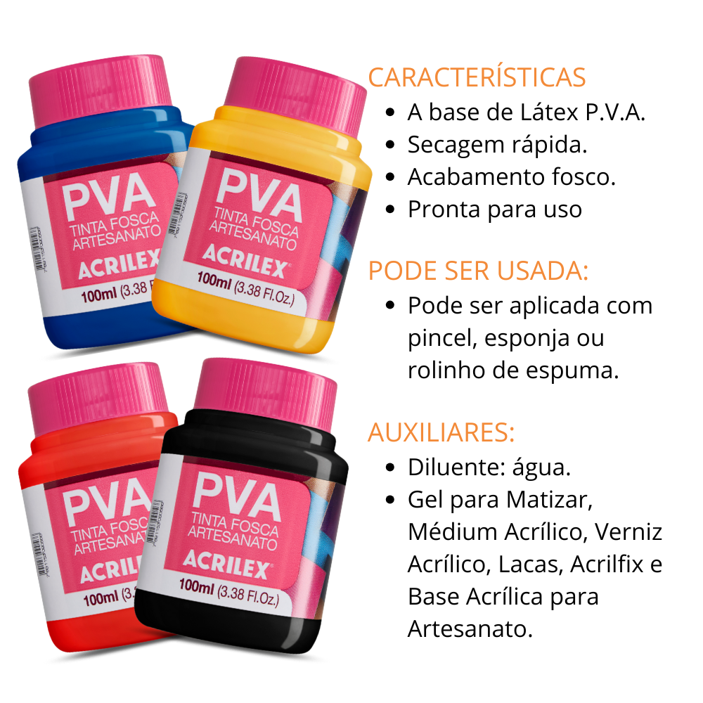 Desenvolvida especialmente para artesãos e entusiastas do DIY, a Tinta PVA Acrilex oferece um acabamento fosco aveludado que valoriza cada detalhe do seu trabalho.