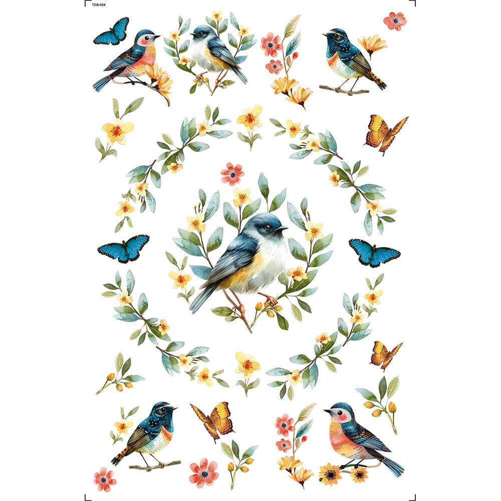 O Transfer de Imagem 19,5x29,5cm TEB-004 Espelhado Pássaros é ideal para personalização e decoração de superfícies rígidas como cerâmica, papel, metal, vidro, madeira e MDF.
